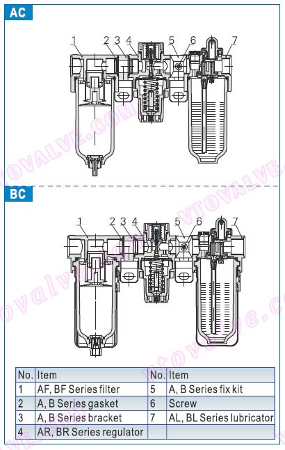 BC2000,BC3000,BC4000 F.R.L combination (Filter Regulator Lubricator Combination)
